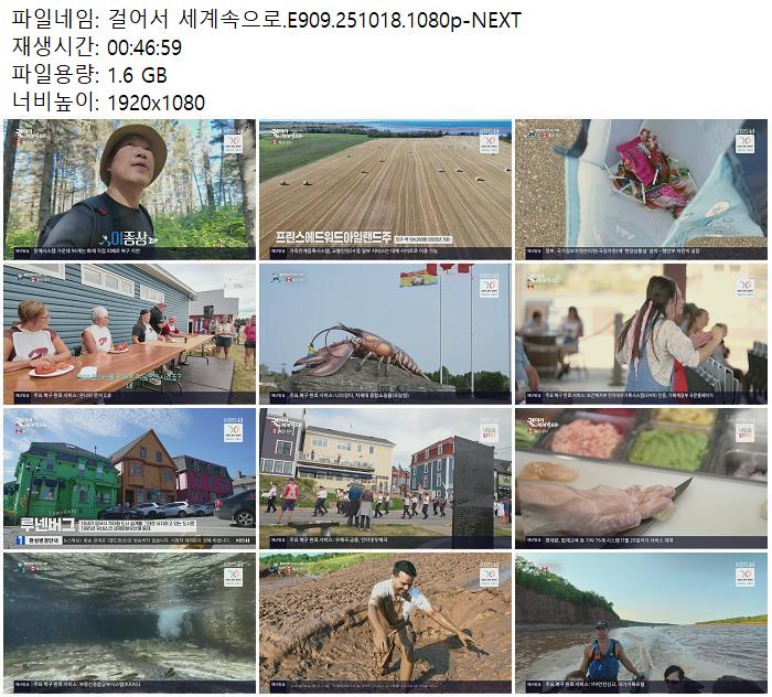 | 걸어서 세계속으로.E909.251018.1080p-NEXT.mp4 | 1.6 G | - | 1920x1080 |
