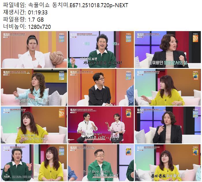 | 속풀이쇼 동치미.E671.251018.720p-NEXT.mp4 | 1.7 G | - | 1280x720 |