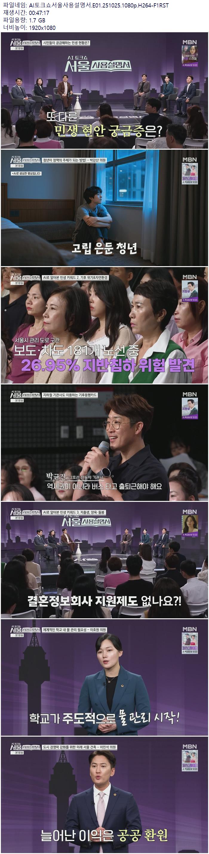 AI토크쇼서울사용설명서.E01.251025.1080p.H264-F1RST 다시보기 토렌트