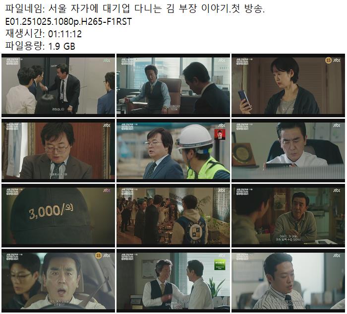 | 서울 자가에 대기업 다니는 김 부장 이야기.첫 방송.E01.251025.1080p.H265-F1RST.mp4 | 1.9 G | - | 1920x1080 |