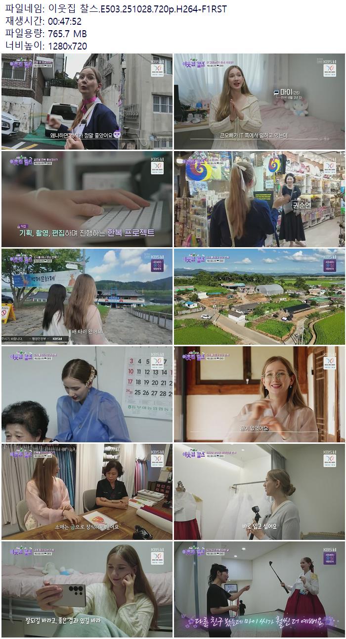 | 이웃집 찰스.E503.251028.720p.H264-F1RST.mp4 | 765.7 M | - | 1280x720 |