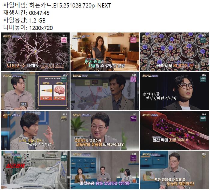 | 히든카드.E15.251028.720p-NEXT.mp4 | 1.2 G | - | 1280x720 |