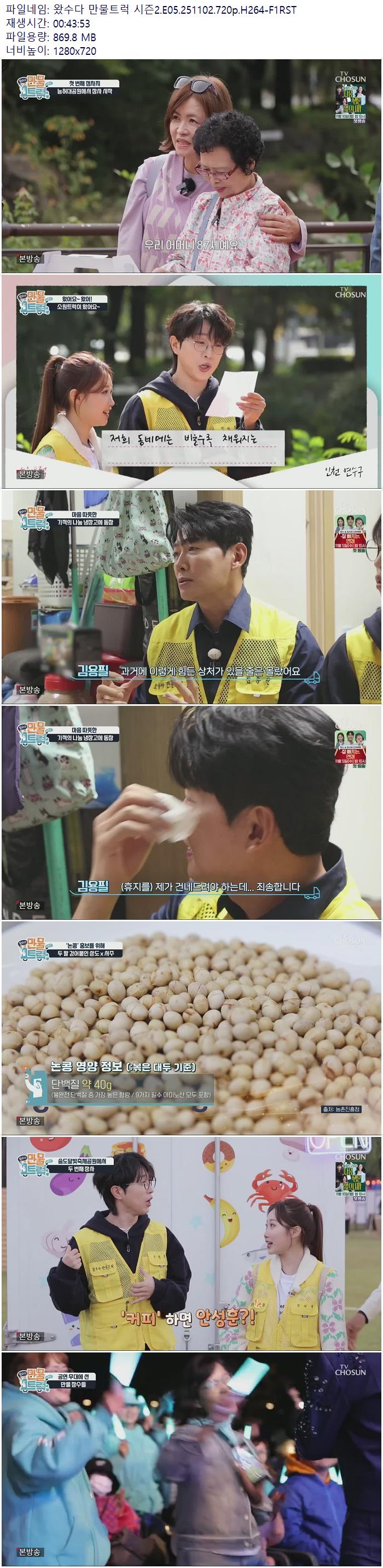 | 왔수다 만물트럭 시즌2.E05.251102.720p.H264-F1RST.mp4 | 869.8 M | - | 1280x720 |