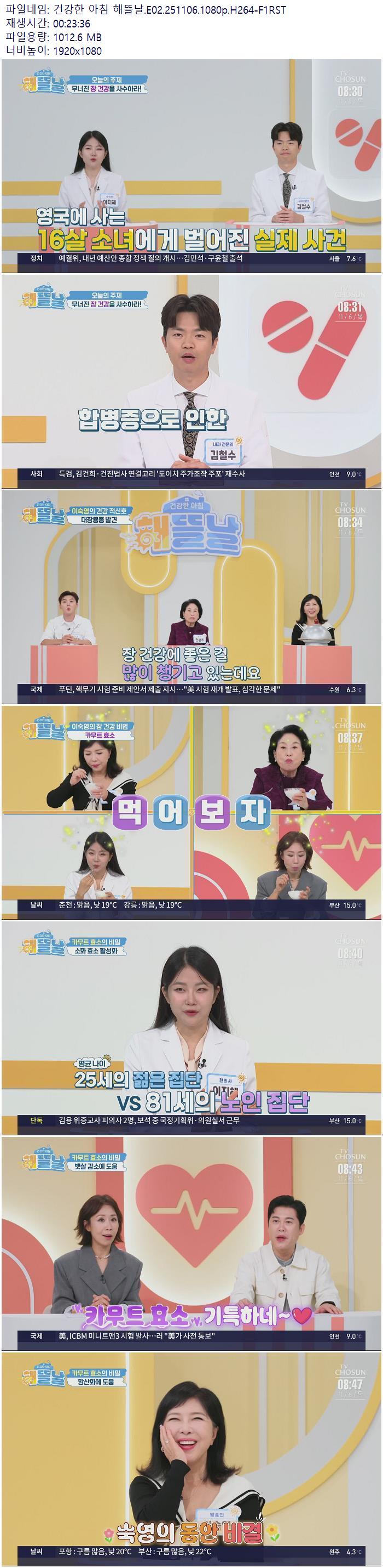 | 건강한 아침 해뜰날.E02.251106.1080p.H264-F1RST.mp4 | 1012.6 M | - | 1920x1080 |