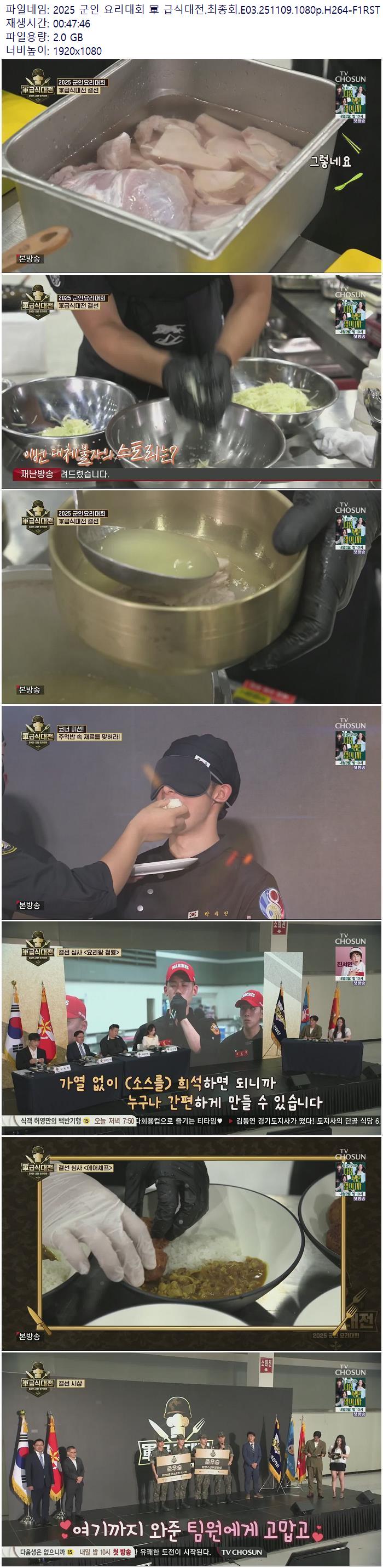 2025 군인 요리대회 軍 급식대전.최종회.E03.251109.1080p.H264-F1RST 다시보기 토렌트
