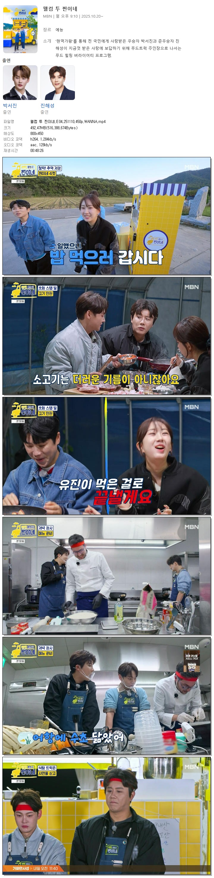 | [MBN] 웰컴 투 찐이네.E04.251110.450p.WANNA[박서진, 진해성].mp4 | 492.5 M | 00:48:26 | 800x450 |