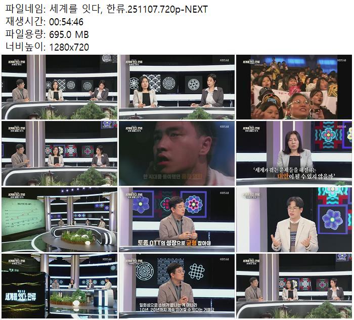 | 세계를 잇다, 한류.251107.720p-NEXT.mp4 | 695 M | - | 1280x720 |