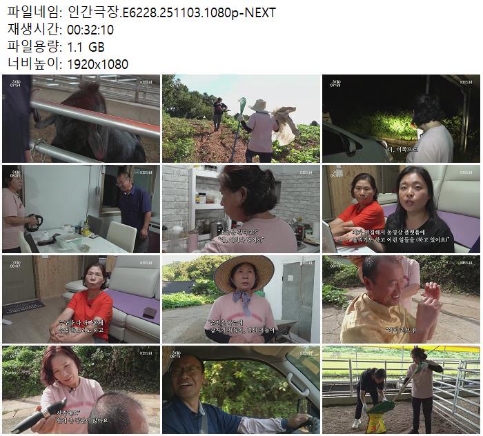 | 인간극장.E6228.251103.1080p-NEXT.mp4 | 1.1 G | - | 1920x1080 |