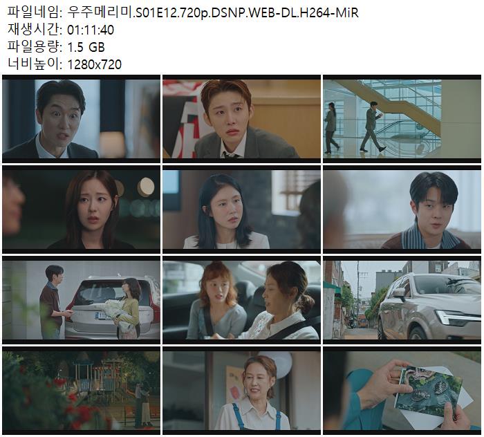 | 우주메리미.S01E12.720p.DSNP.WEB-DL.H264-MiR.mkv | 1.5 G | - | 1280x720 |