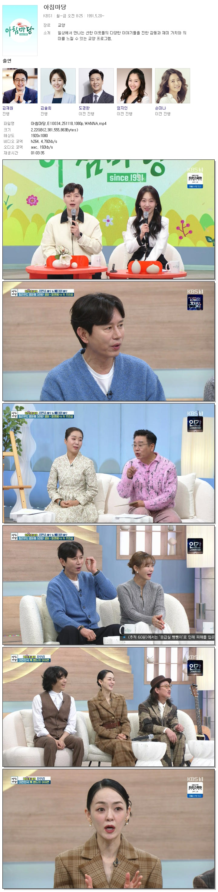 | [KBS1] 아침마당.E10034.251118.1080p.WANNA[엄지인, 박철규].mp4 | 2.2 G | 01:03:35 | 1920x1080 |