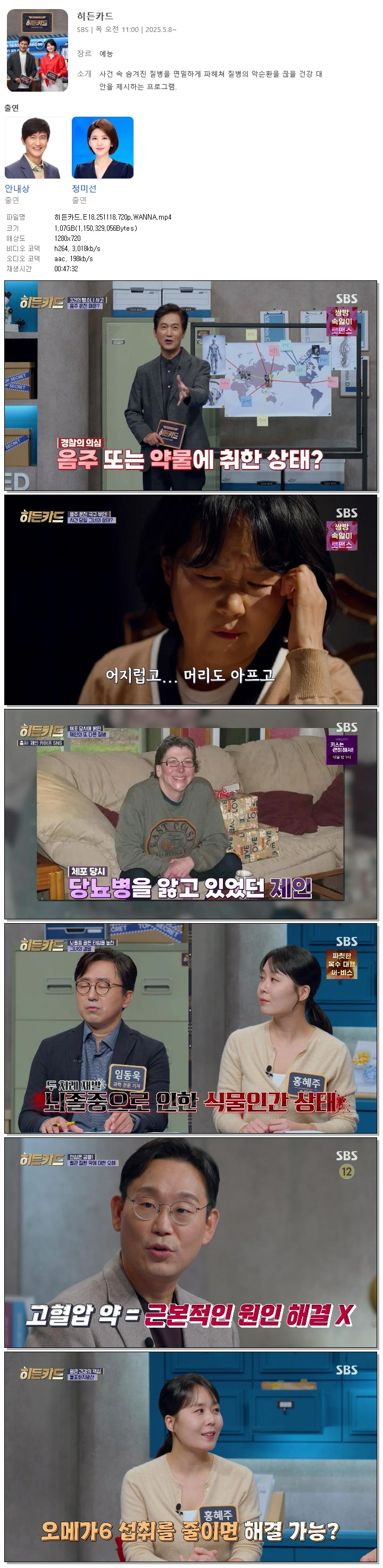[SBS] 히든카드.E18.251118.720p.WANNA[안내상, 정미선].mp4 1.1 G 00:47:32 1280x720