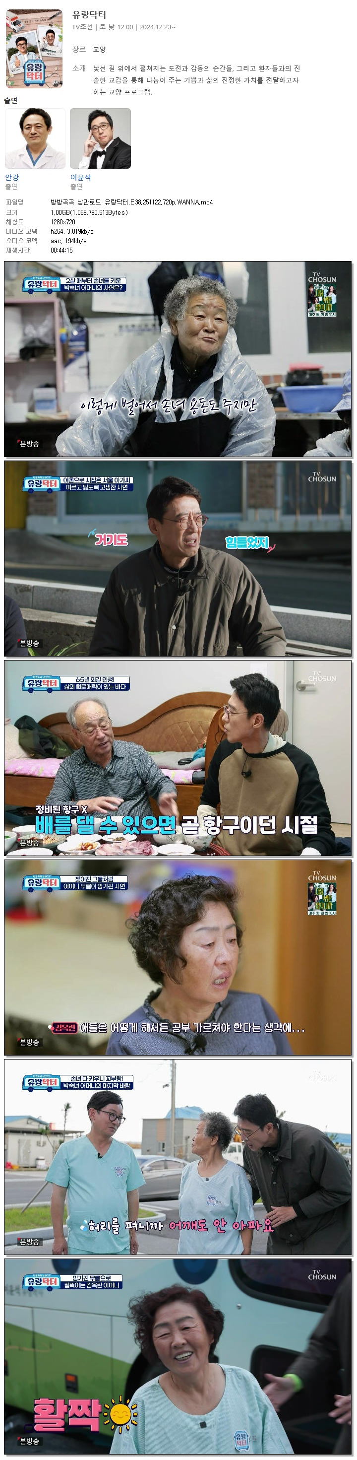 [TV조선] 방방곡곡 낭만로드 유랑닥터.E38.251122.720p.WANNA[안강, 이윤석].mp4 1020.2 M 00:44:15 1280x720
