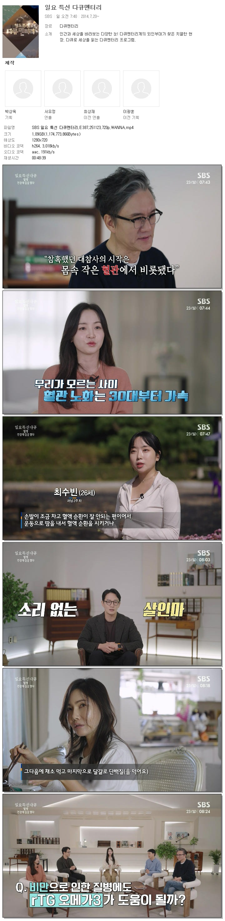 | [SBS] SBS 일요 특선 다큐멘터리.E387.251123.720p.WANNA.mp4 | 1.1 G | 00:48:39 | 1280x720 |