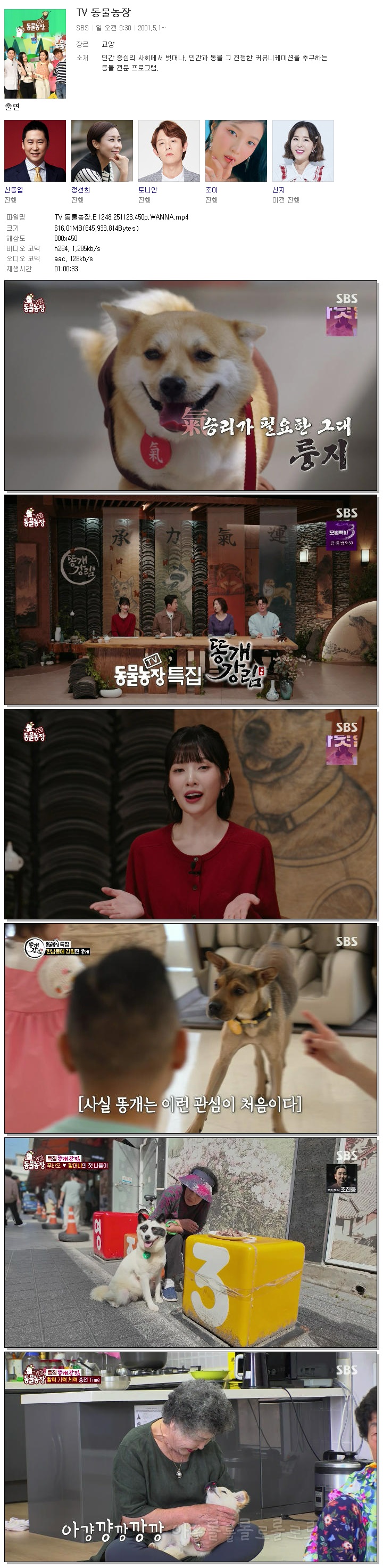 | [SBS] TV 동물농장.E1248.251123.450p.WANNA[신동엽, 정선희].mp4 | 616 M | 01:00:33 | 800x450 |
