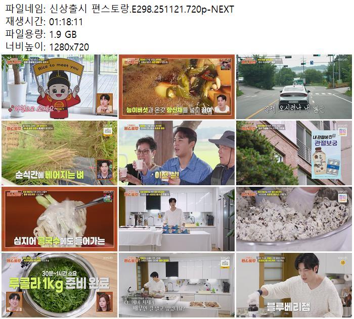 | 신상출시 편스토랑.E298.251121.720p-NEXT.mp4 | 1.9 G | - | 1280x720 |