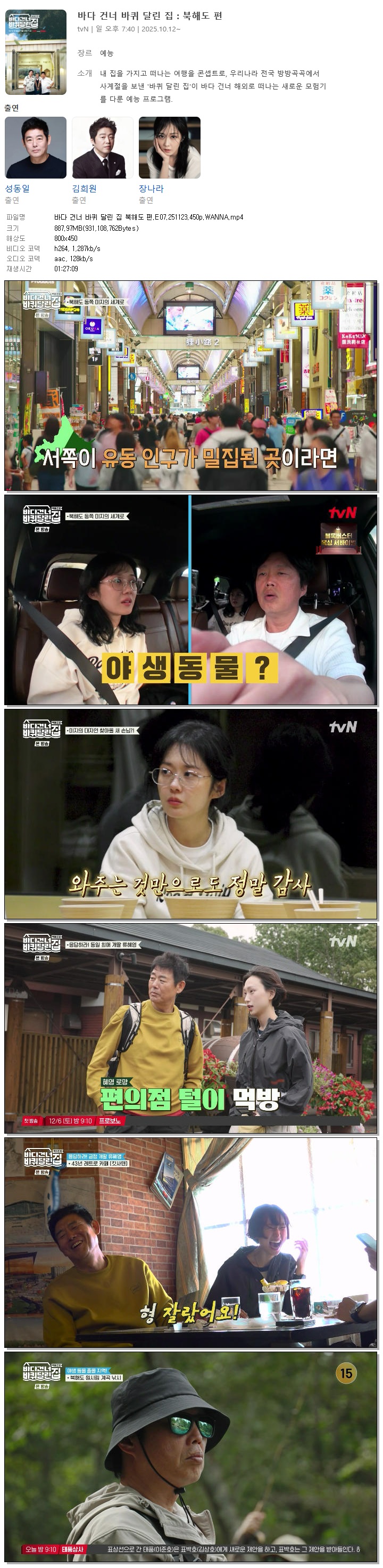| [TVN] 바다 건너 바퀴 달린 집 북해도 편.E07.251123.450p.WANNA[류혜영].mp4 | 888 M | 01:27:09 | 800x450 |