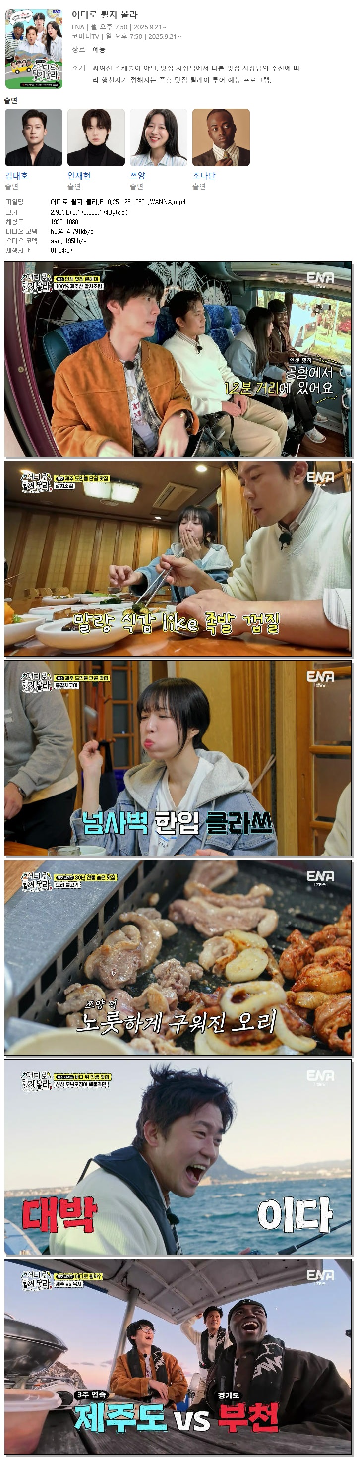 [ENA] 어디로 튈지 몰라.E10.251123.1080p.WANNA[김대호, 안재현].mp4 3 G 01:24:37 1920x1080