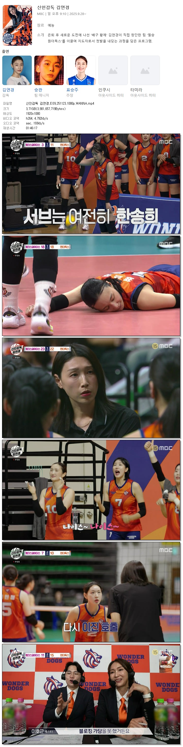 [MBC] 신인감독 김연경.E09.251123.1080p.WANNA[김연경, 부승관] 다시보기 토렌트