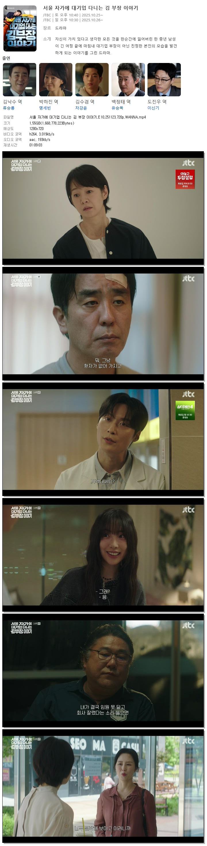 [JTBC] 서울 자가에 대기업 다니는 김 부장 이야기.E10.251123.720p.WANNA[류승룡, 명세빈].mp4 1.6 G 01:09:03 1280x720