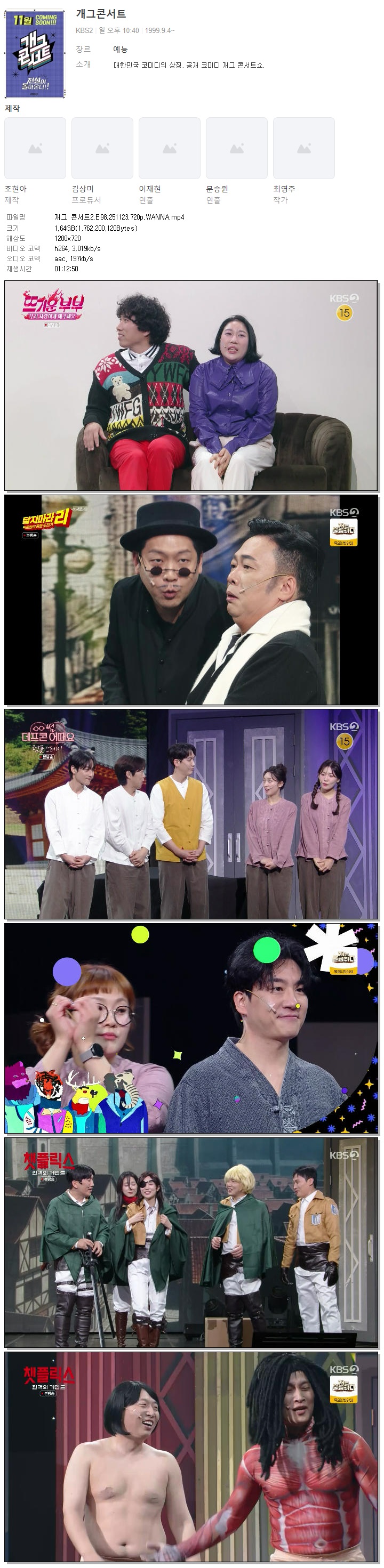 [KBS2] 개그 콘서트2.E98.251123.720p.WANNA[신윤승, 김영희].mp4 1.6 G 01:12:50 1280x720