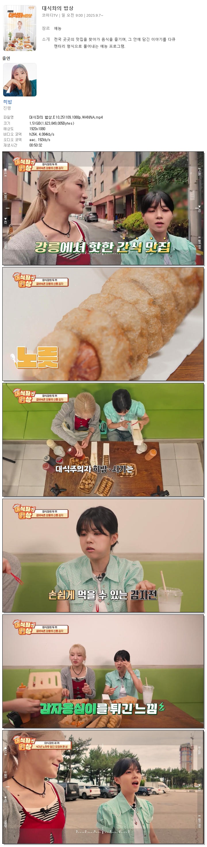| [코미디TV] 대식좌의 밥상.E10.251109.1080p.WANNA[히밥].mp4 | 1.5 G | 00:50:32 | 1920x1080 |