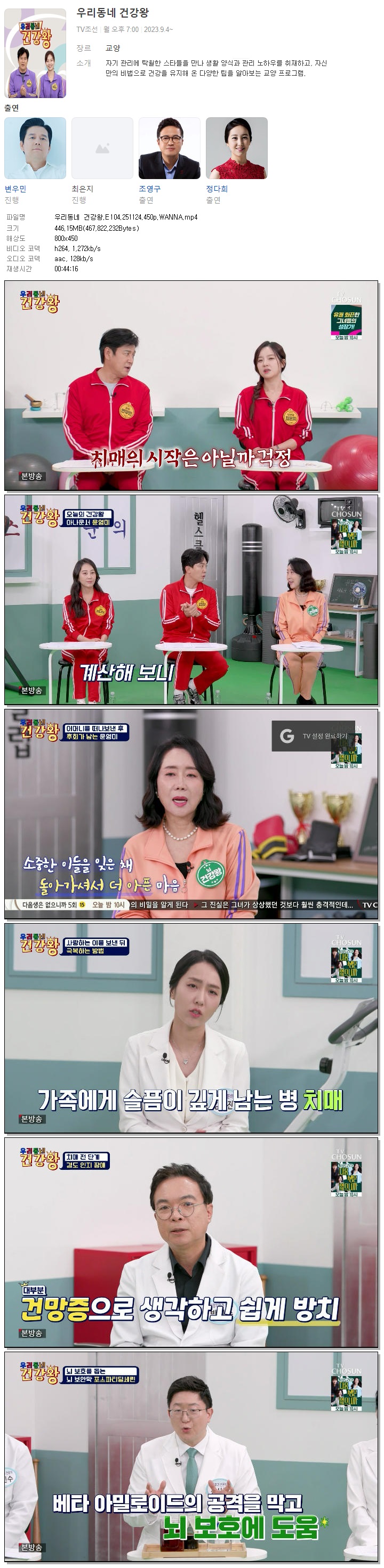 | [TV조선] 우리동네 건강왕.E104.251124.450p.WANNA[변우민, 최은지].mp4 | 446.2 M | 00:44:16 | 800x450 |
