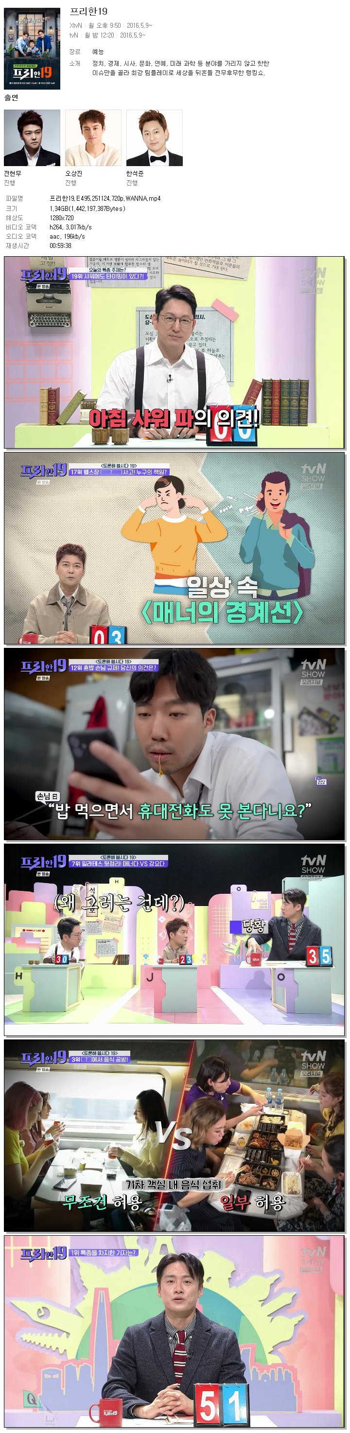 [TVNSHOW] 프리한19.E495.251124.720p.WANNA[전현무, 오상진] 다시보기 토렌트