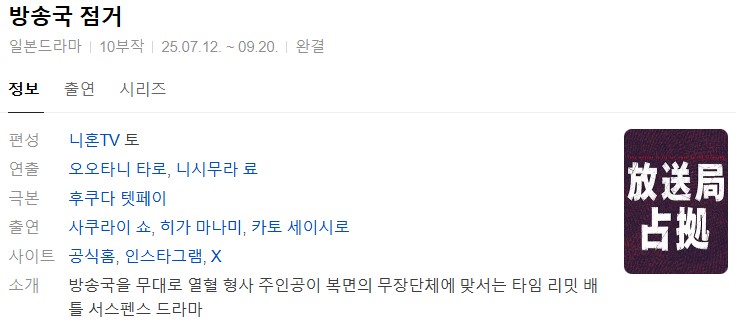 | 방송국 점거.E01.1080p.HDTV.x264.AAC.mkv | 2 G | 00:53:02 | 1920x1080 |