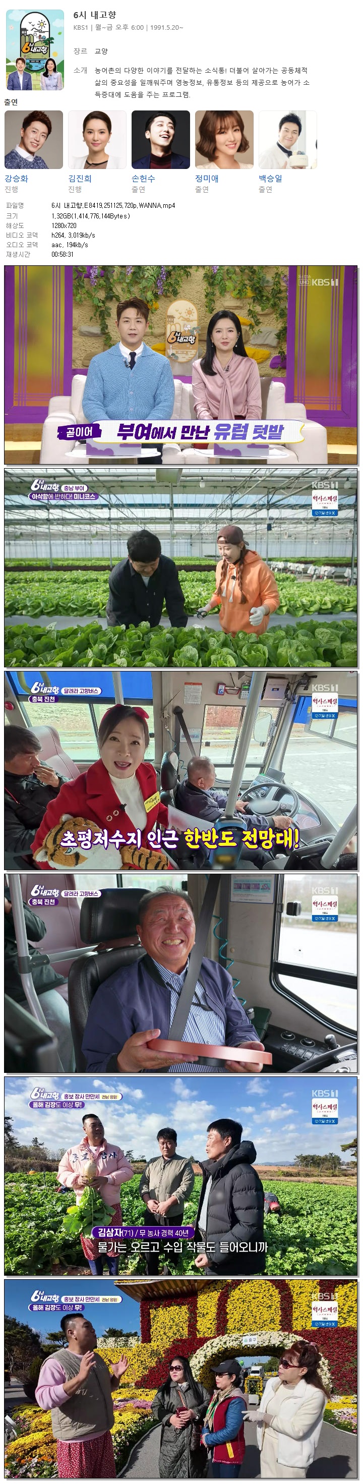 [KBS1] 6시 내고향.E8419.251125.720p.WANNA[강승화, 김진희] 다시보기 토렌트