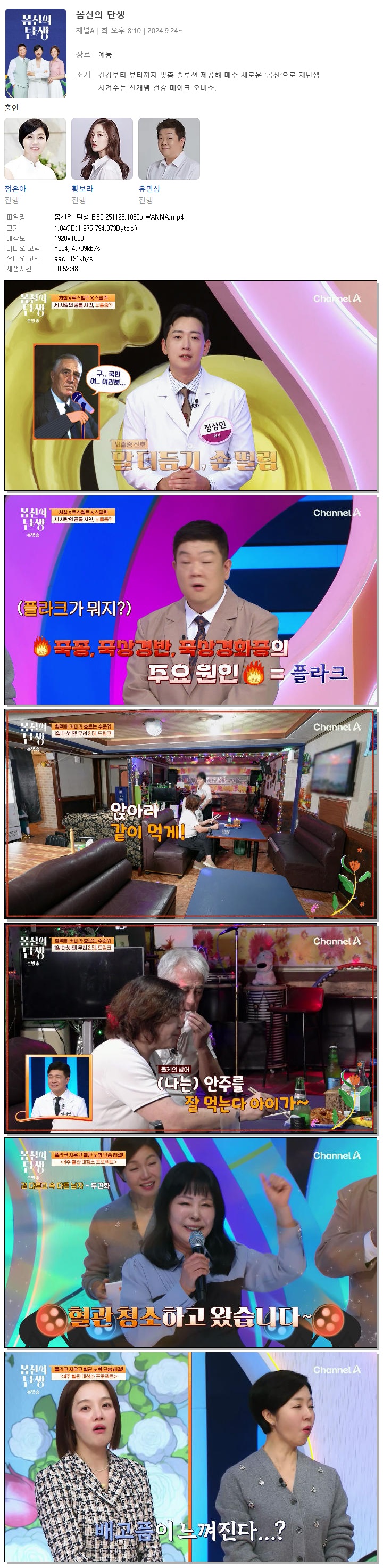 | [채널A] 몸신의 탄생.E59.251125.1080p.WANNA[황보라, 유민상].mp4 | 1.8 G | 00:52:48 | 1920x1080 |