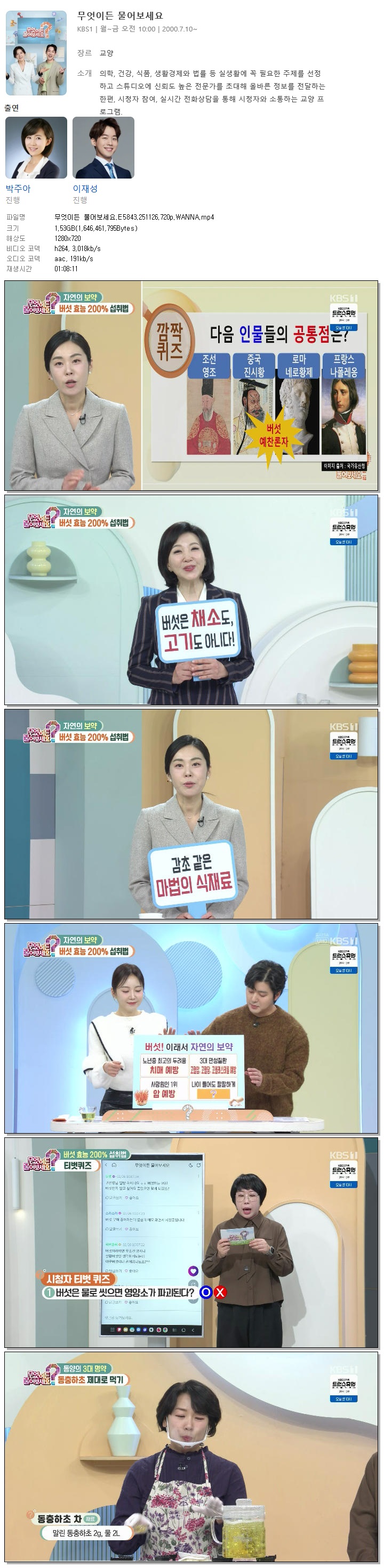 [KBS1] 무엇이든 물어보세요.E5843.251126.720p.WANNA[박주아, 이재성].mp4 1.5 G 01:08:11 1280x720