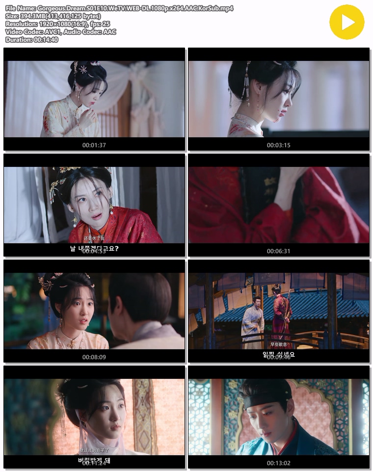 | Gorgeous.Dream.S01E10.WeTV.WEB-DL.1080p.x264.AAC.KorSub.mp4 | 394.3 M | 00:14:40 | 1920x1080 |