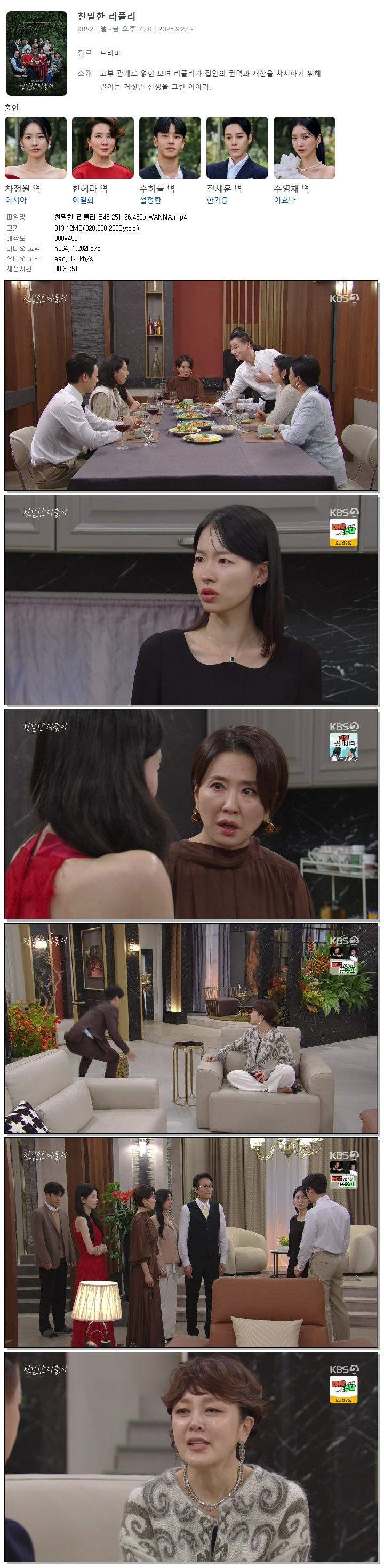 [KBS2] 친밀한 리플리.E43.251126.450p.WANNA[이시아, 이일화] 다시보기 토렌트