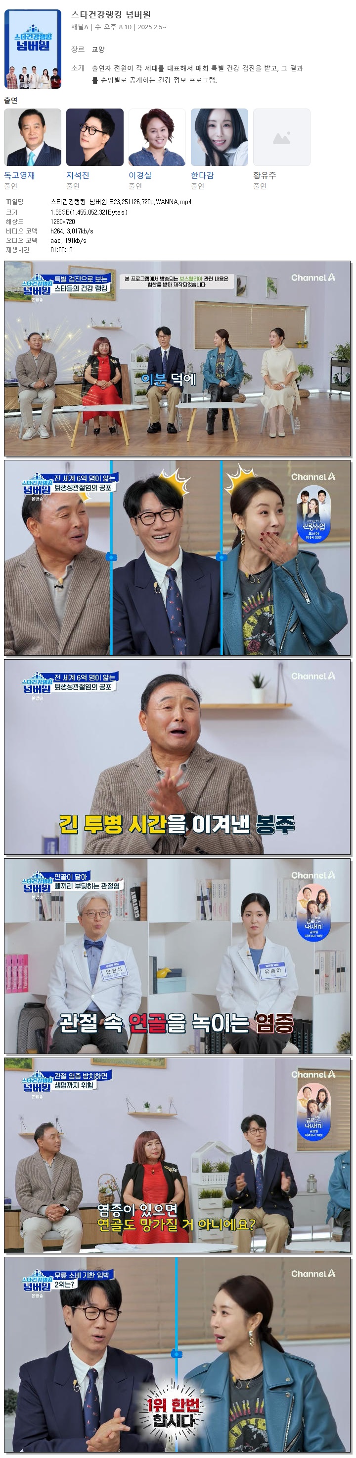 | [채널A] 스타건강랭킹 넘버원.E23.251126.720p.WANNA[지석진, 이경실].mp4 | 1.4 G | 01:00:19 | 1280x720 |