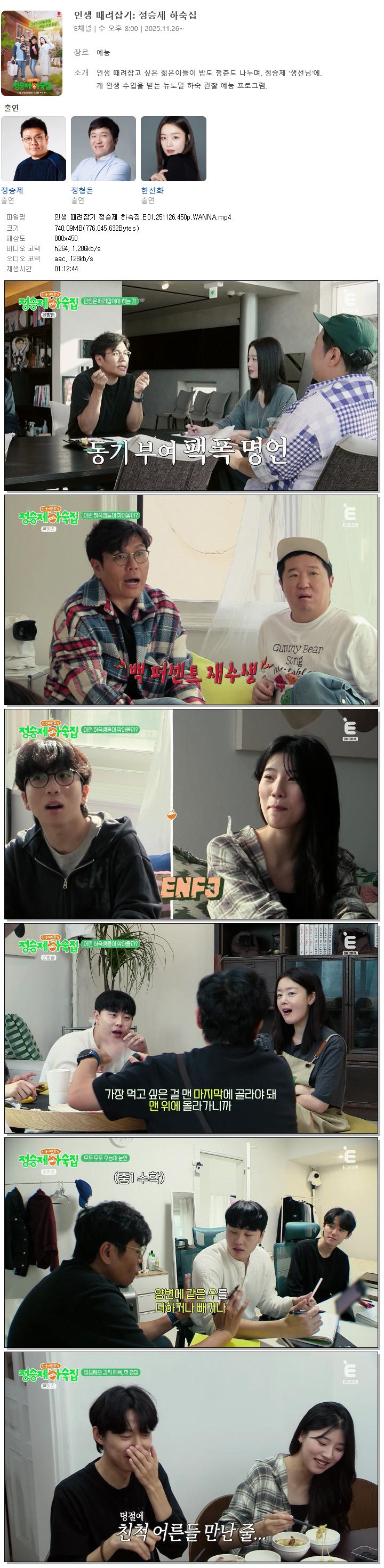 [E채널] 인생 때려잡기 정승제 하숙집.E01.251126.450p.WANNA[정승제, 정형돈] 다시보기 토렌트