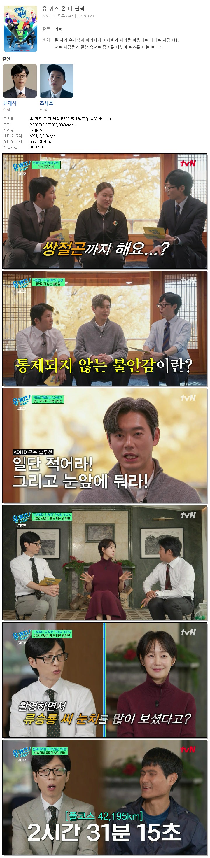 | [TVN] 유 퀴즈 온 더 블럭.E320.251126.720p.WANNA[명세빈].mp4 | 2.4 G | 01:46:13 | 1280x720 |