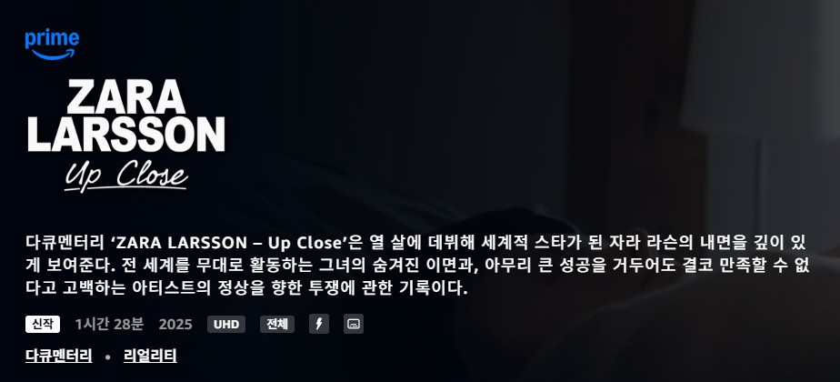 [다큐] 자라 라슨 업 크로즈.Zara Larsson Up Close.2025.1080p.한글자막 다시보기 토렌트