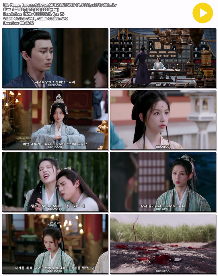 | Love.and.Crown.S01E23.NF.WEB-DL.1080p.x264.AAC.mkv | 1.2 G | 00:46:02 | 1920x1080 |