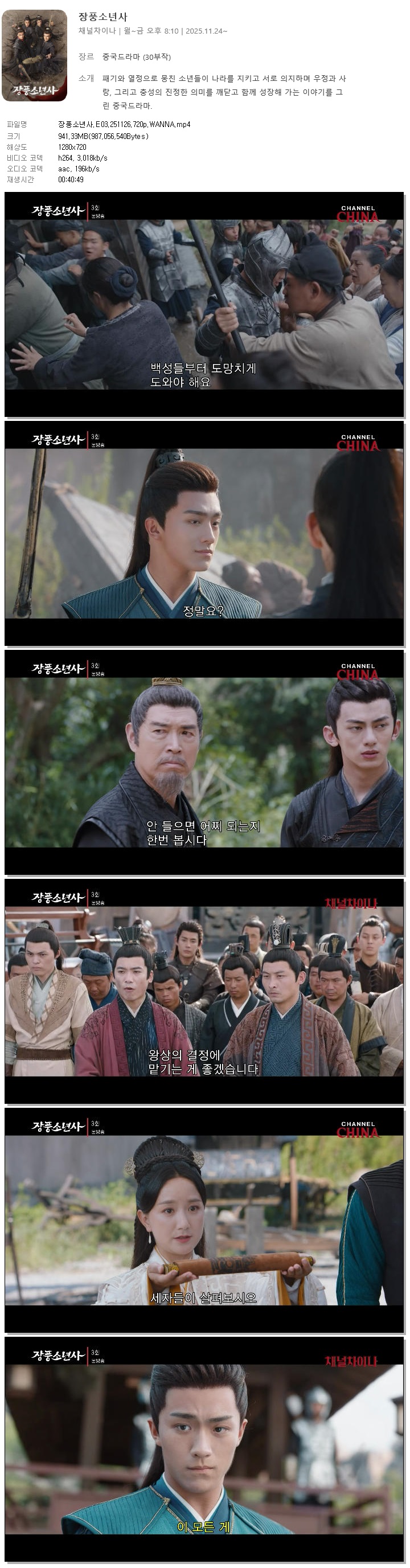 [채널차이나] 장풍소년사.E03.251126.720p.WANNA[이탁소, 장강락].mp4 941.3 M 00:40:49 1280x720