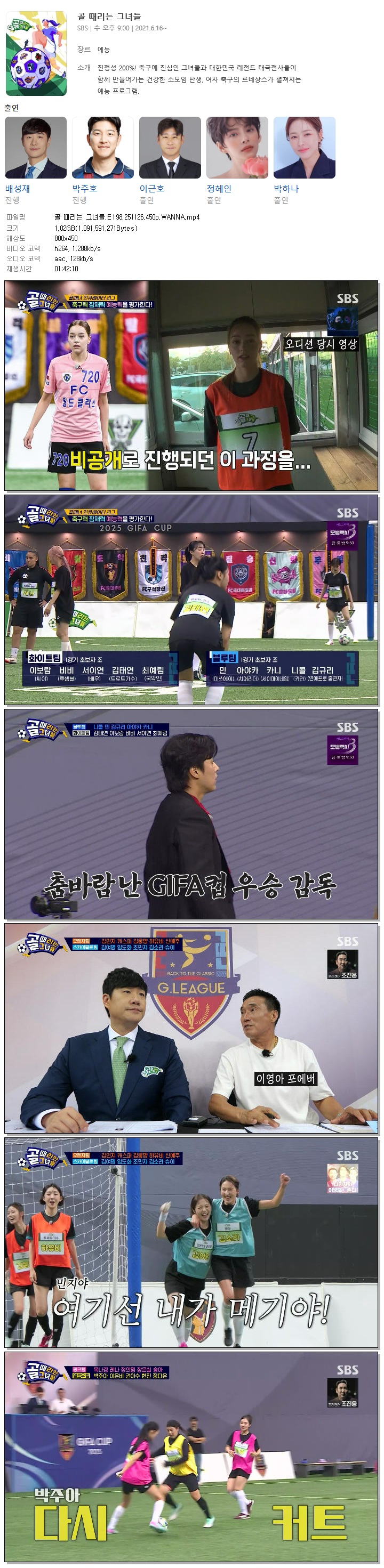 [SBS] 골 때리는 그녀들.E198.251126.450p.WANNA[강보람, 이승연].mp4 1 G 01:42:10 800x450