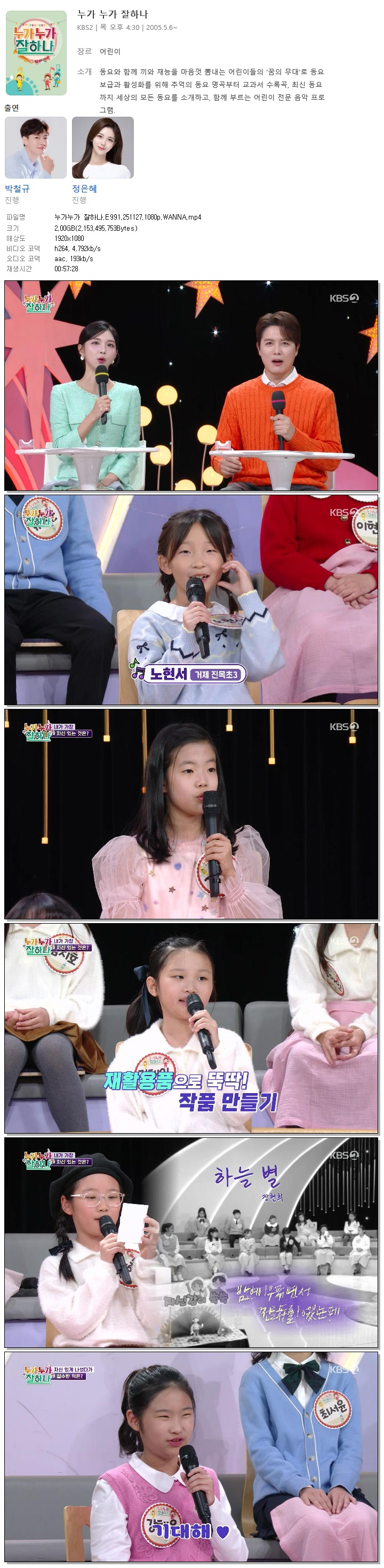 [KBS2] 누가누가 잘하나.E991.251127.1080p.WANNA[박철규, 정은혜] 다시보기 토렌트