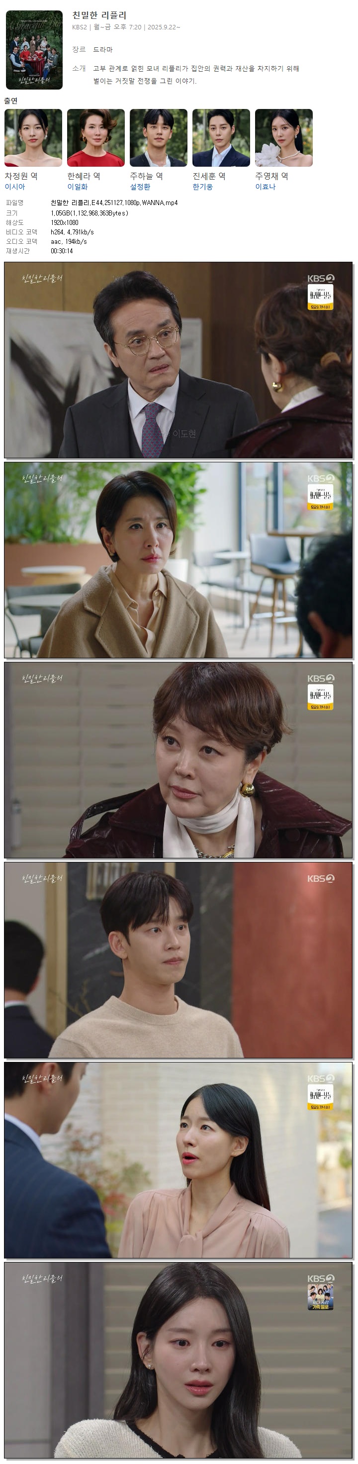 [KBS2] 친밀한 리플리.E44.251127.1080p.WANNA[이시아, 이일화] 다시보기 토렌트