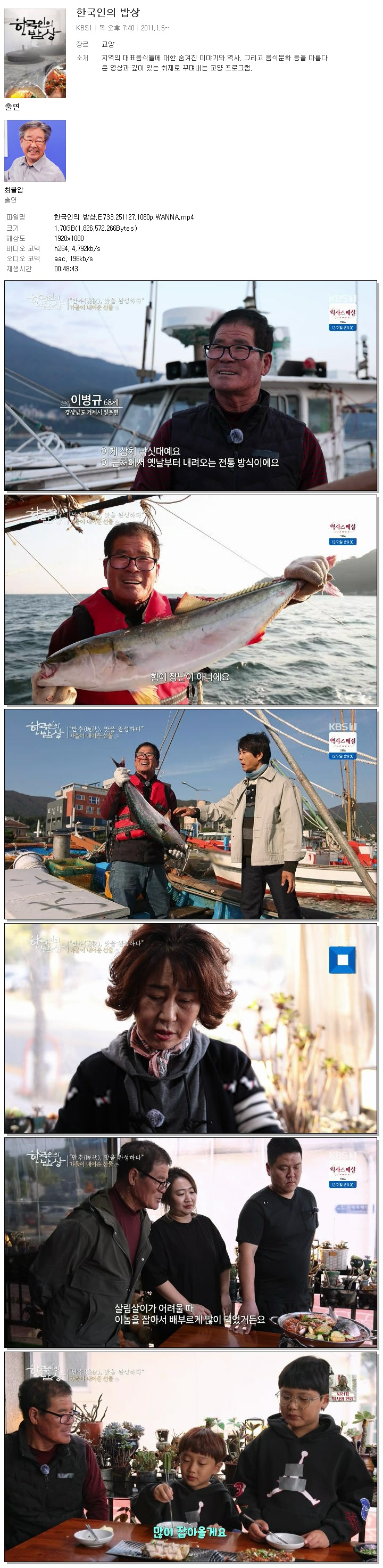 | [KBS1] 한국인의 밥상.E733.251127.1080p.WANNA.mp4 | 1.7 G | 00:48:43 | 1920x1080 |