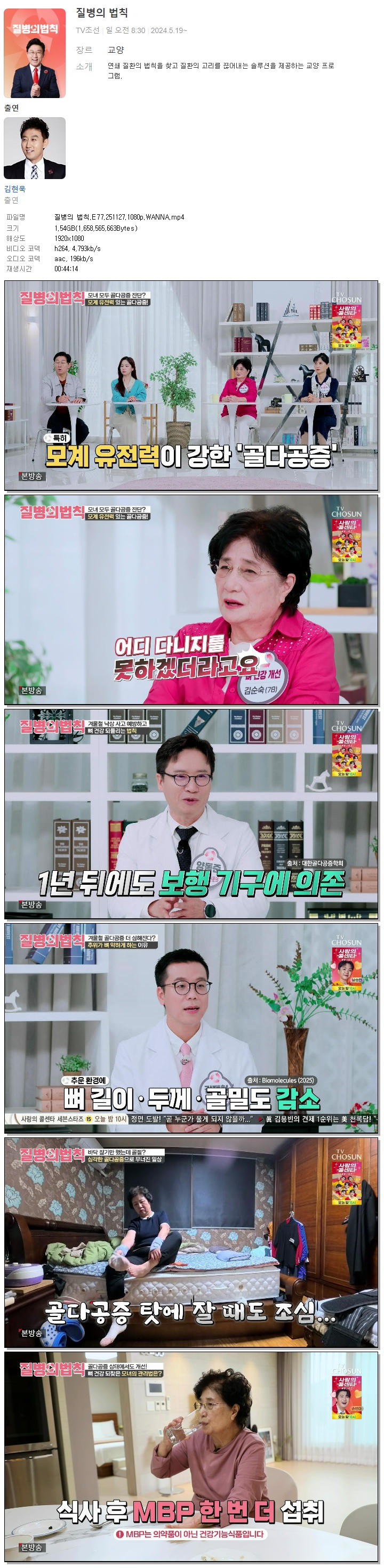 | [TV조선] 질병의 법칙.E77.251127.1080p.WANNA[김현욱].mp4 | 1.5 G | 00:44:14 | 1920x1080 |