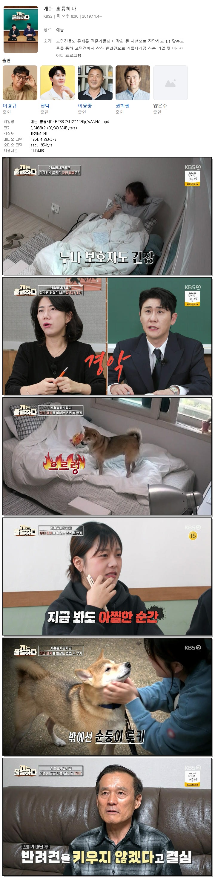 [KBS2] 개는 훌륭하다.E233.251127.1080p.WANNA[이경규, 영탁].mp4 2.2 G 01:04:03 1920x1080