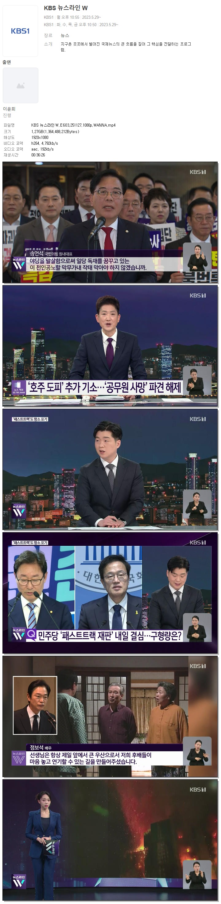 | [KBS1] KBS 뉴스라인W.E603.251127.1080p.WANNA.mp4 | 1.3 G | 00:36:26 | 1920x1080 |