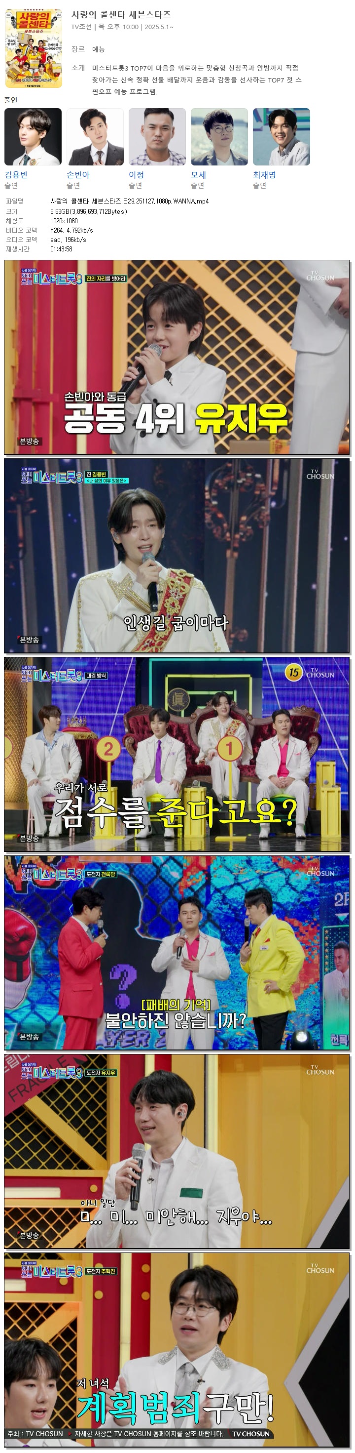 [TV조선] 사랑의 콜센타 세븐스타즈.E29.251127.1080p.WANNA[김용빈, 손빈아] 다시보기 토렌트