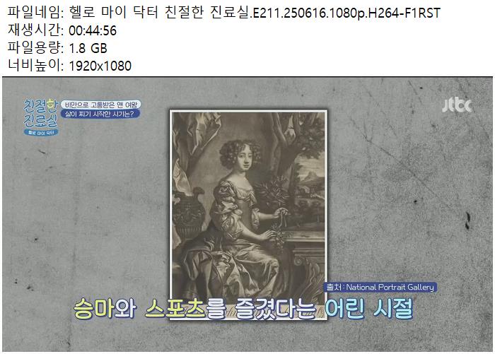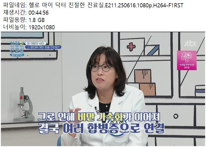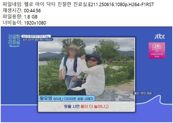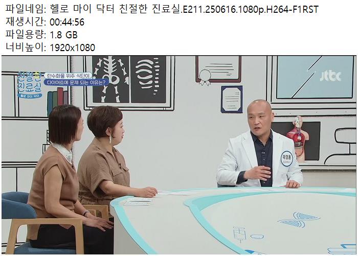 | 헬로 마이 닥터 친절한 진료실.E211.250616.1080p.H264-F1RST.mp4 | 1.8 G | 00:44:56 | 1920x1080 |