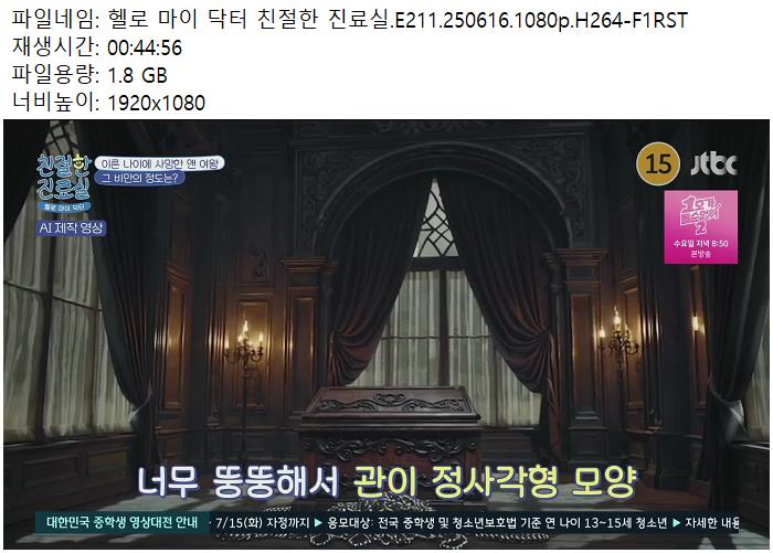 헬로 마이 닥터 친절한 진료실.E211.250616.1080p.H264-F1RST 다시보기 토렌트
