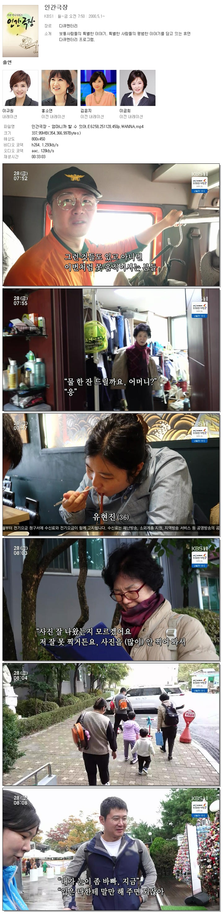 [KBS1] 인간극장.E6258.251128.450p.WANNA.mp4 338 M 00:33:03 800x450